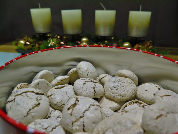 - Mandeln und Schokolade unterheben und mit 2 Teelöffeln kleine Häufchen auf Oblaten oder Backpapier setzen.